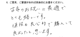 古希のお祝いに最適でとても嬉しいです。値段も良心的で購入して良かったと思います。